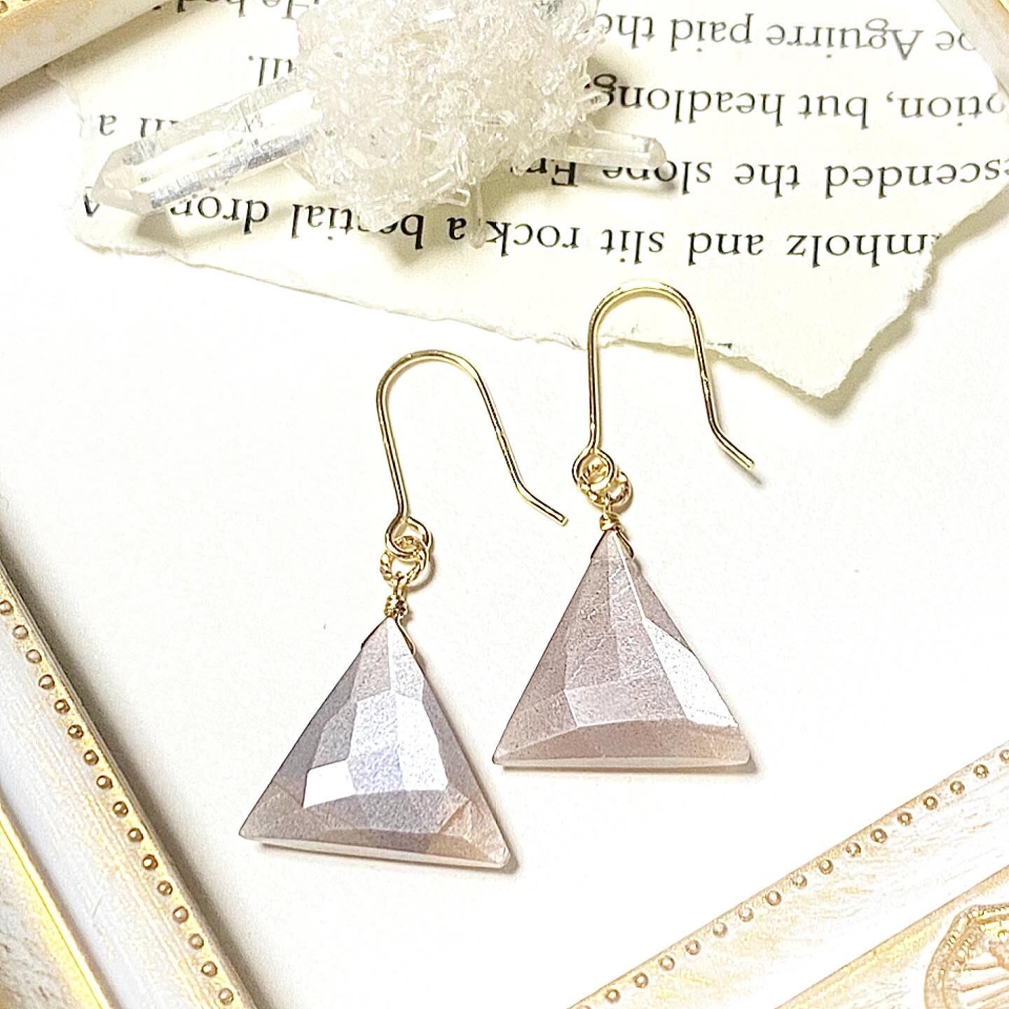 カットが入ったトライアングル型のオレンジサンムーンストーンです✧︎*。