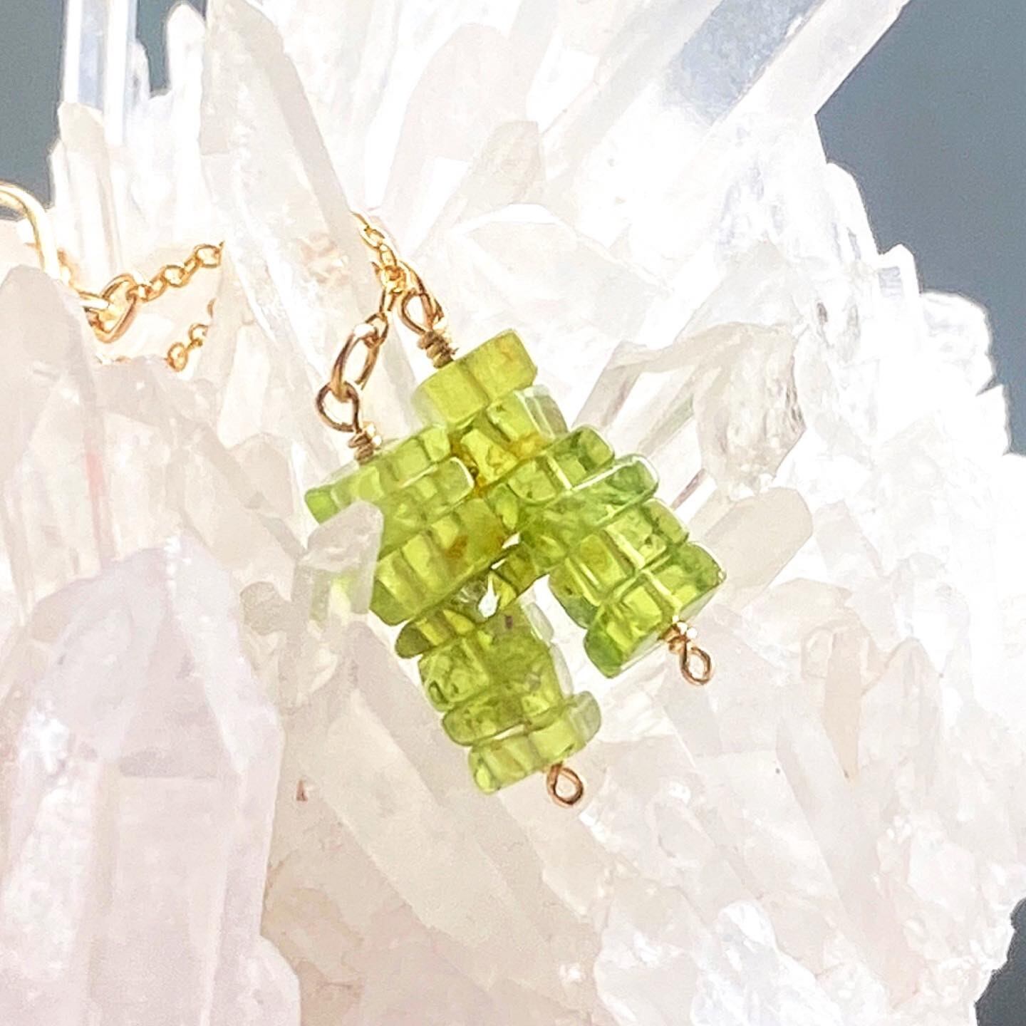 スクエア型のペリドットを使用したゆれるタイプのピアスです✧︎*。