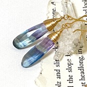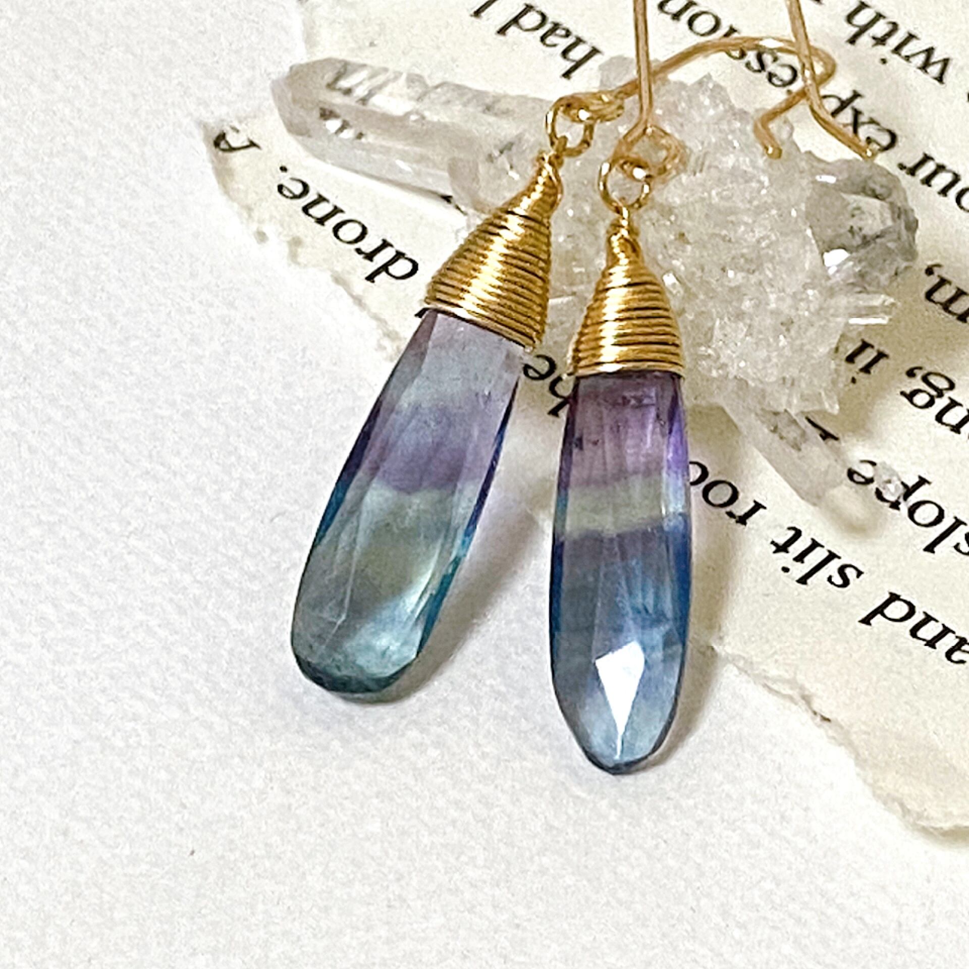 14kgf製 レインボーフローライト ロングペアシェイプピアスA