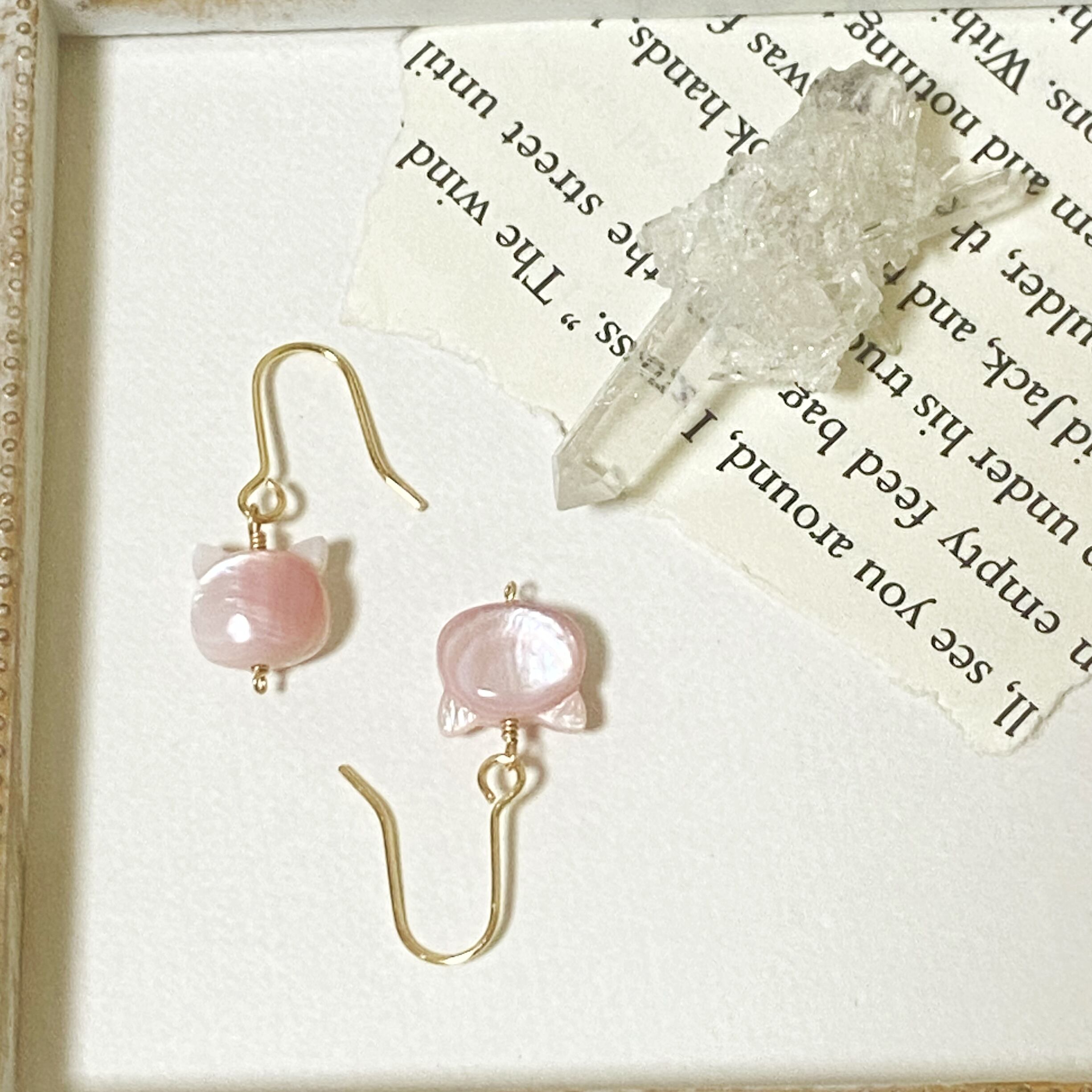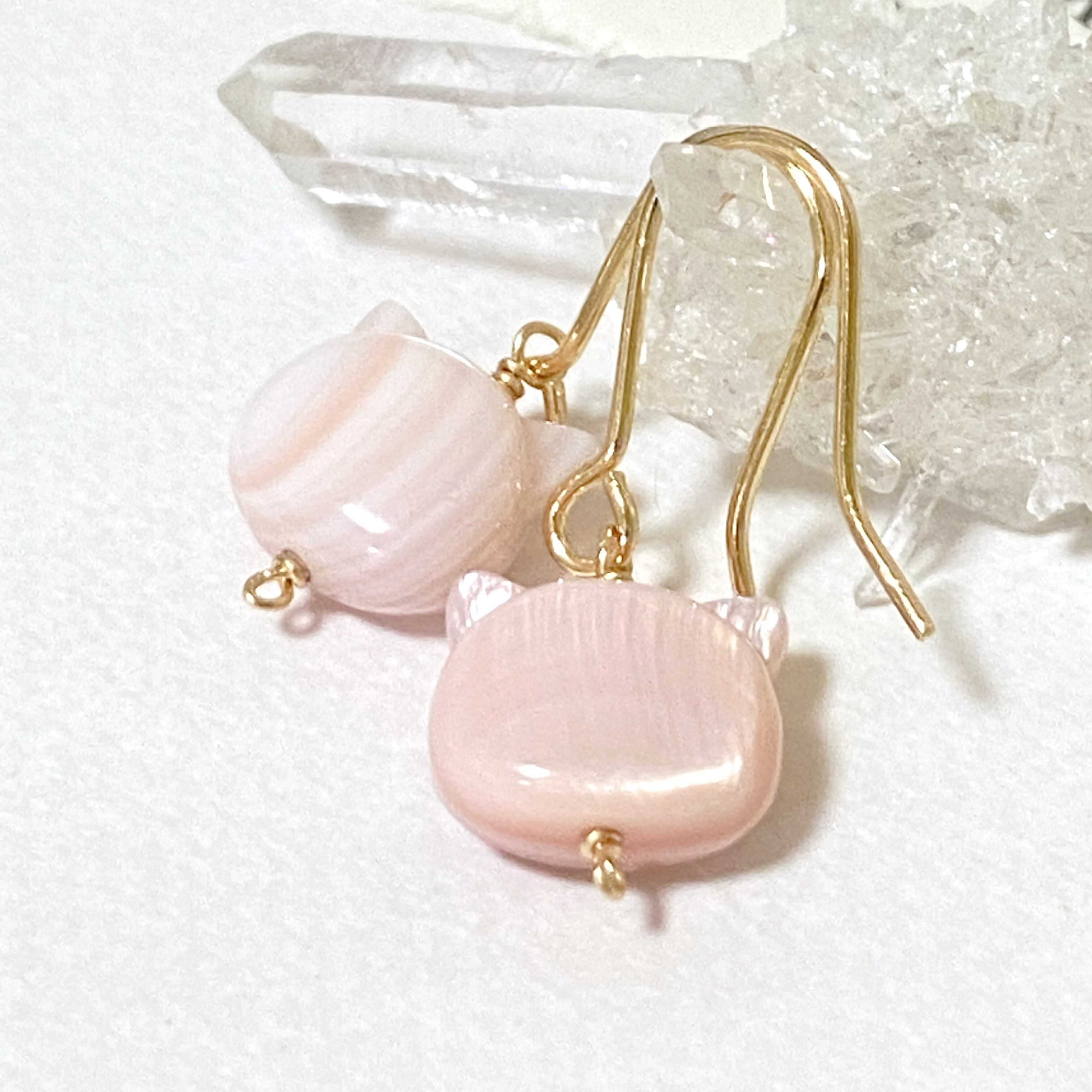 かわいい猫の形をしたシェルを使用したピアスです✧︎*。