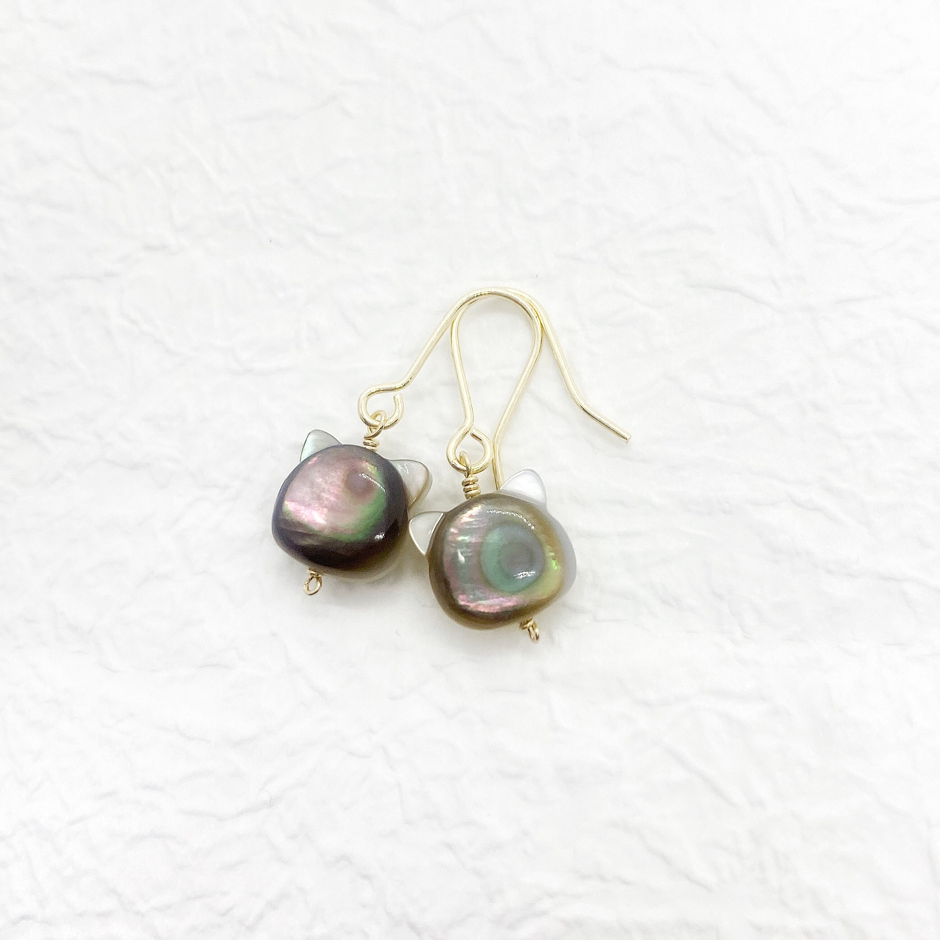 『再販』14kgf製 みたらしカラーブラックシェル にゃんこピアス