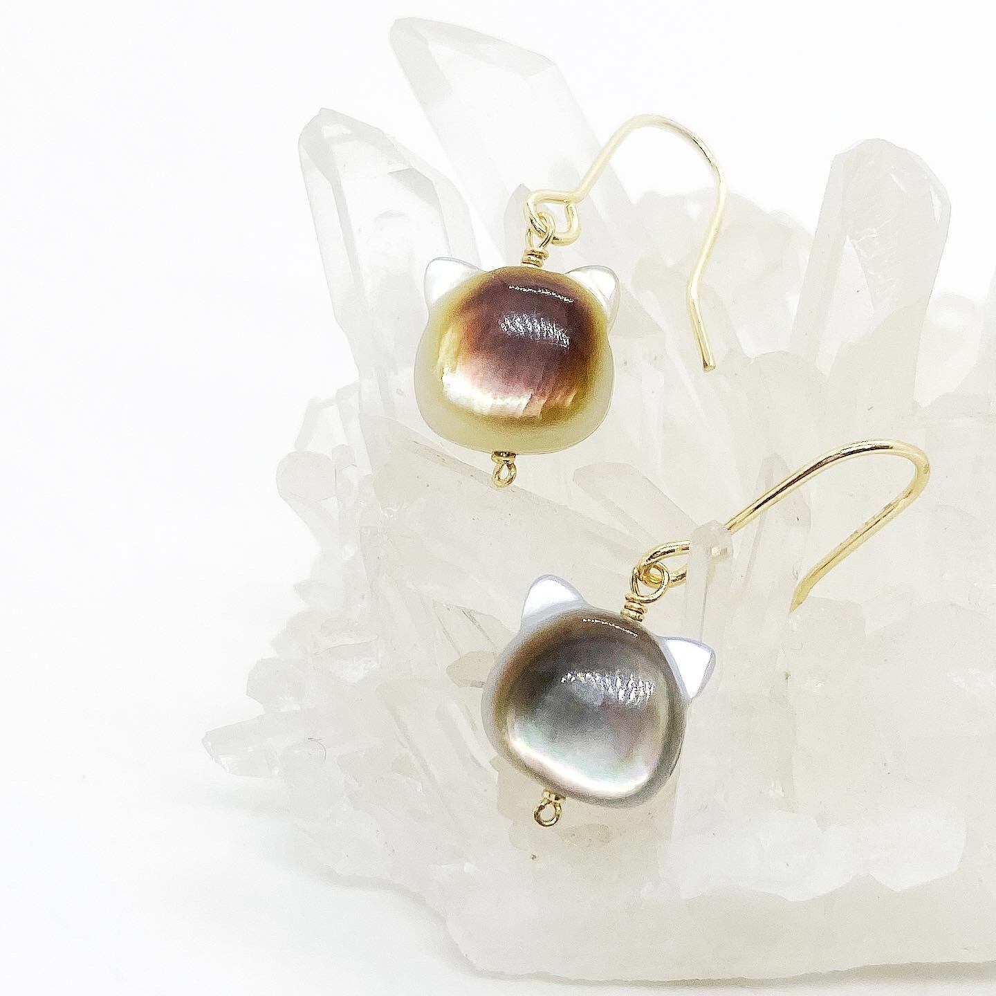 かわいい猫の形をしたシェルを使用したピアスです✧︎*。