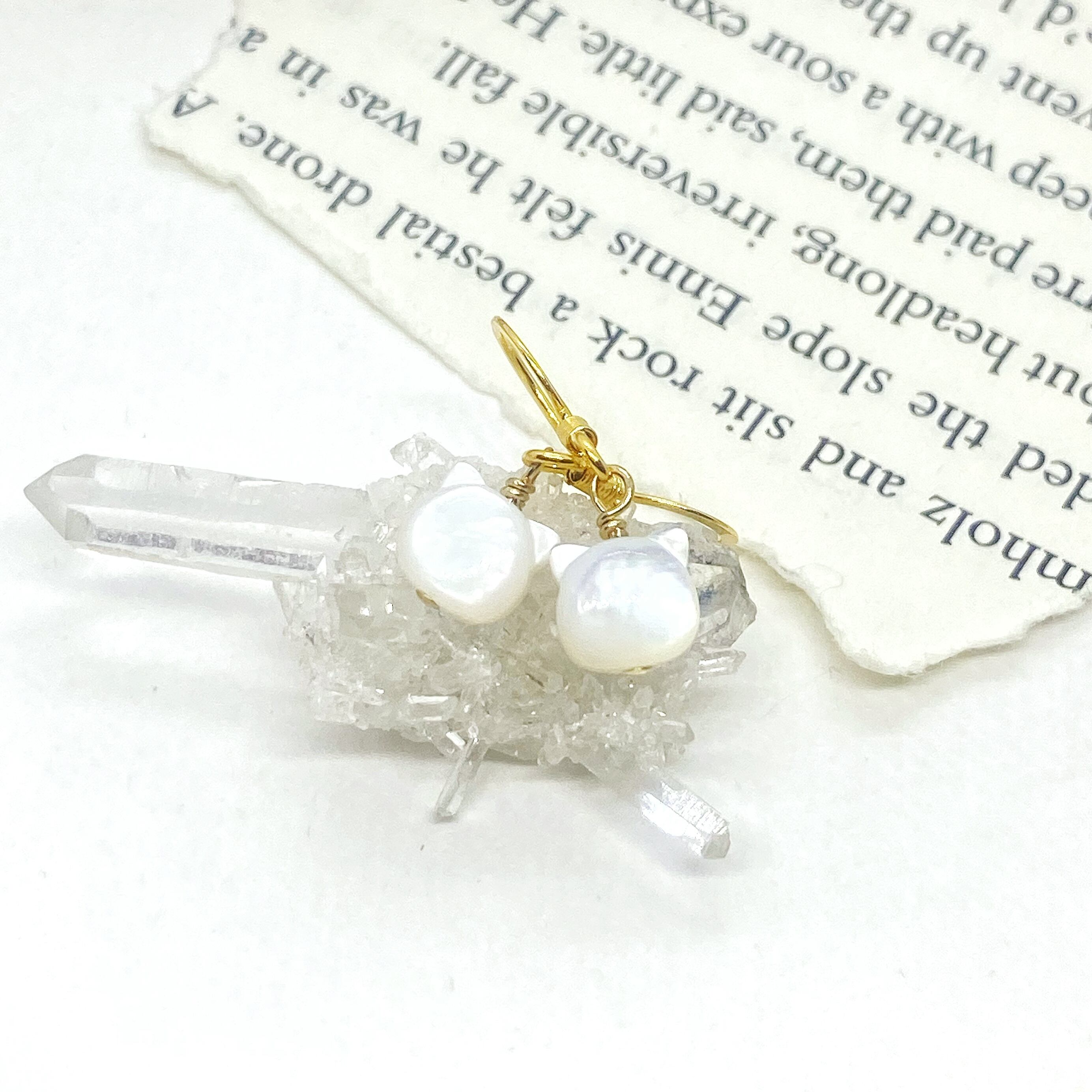 ちびちゃくてかわいい猫の形をしたシェルを使用したピアスです✧︎*。
