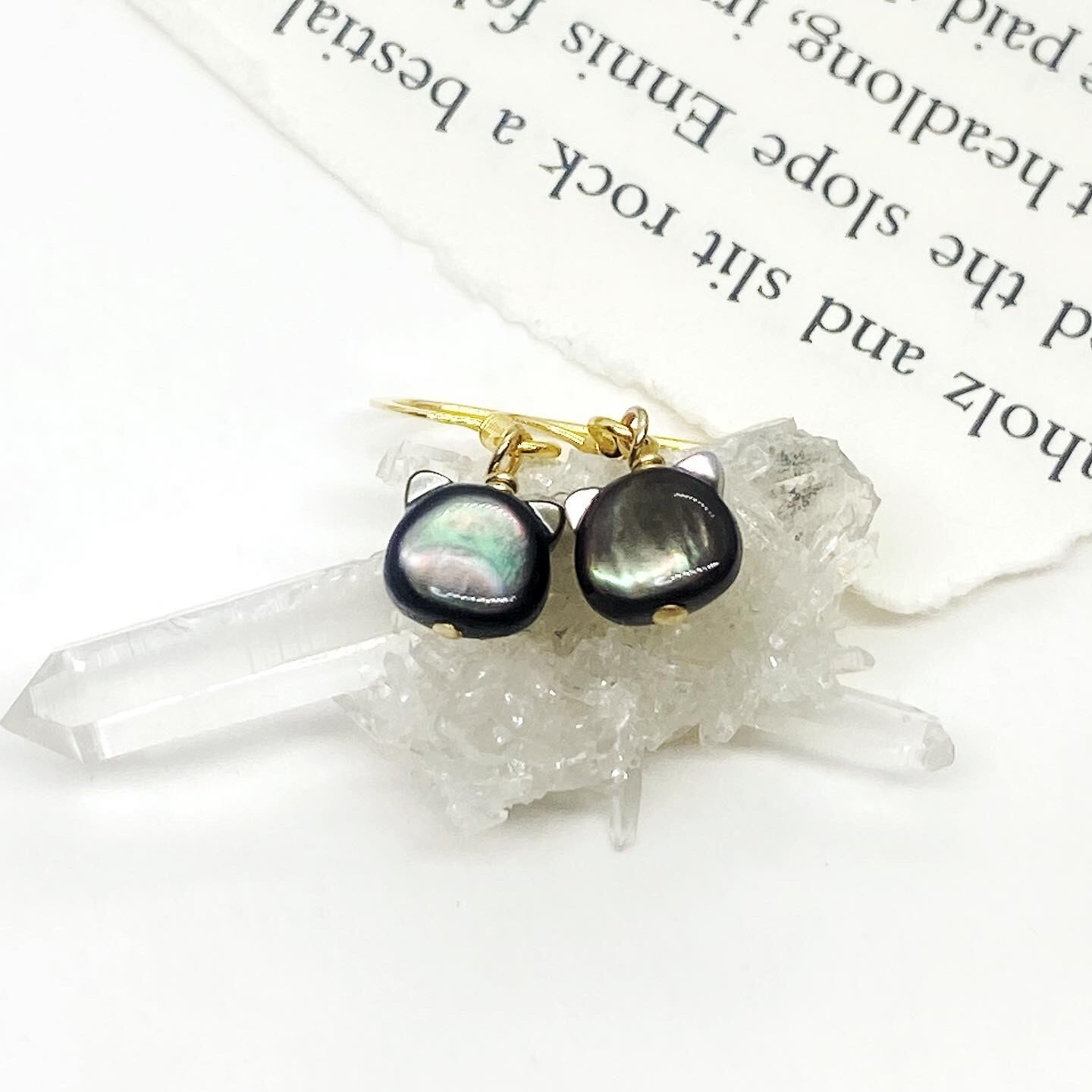 ちびちゃくてかわいい猫の形をしたシェルを使用したピアスです✧︎*。