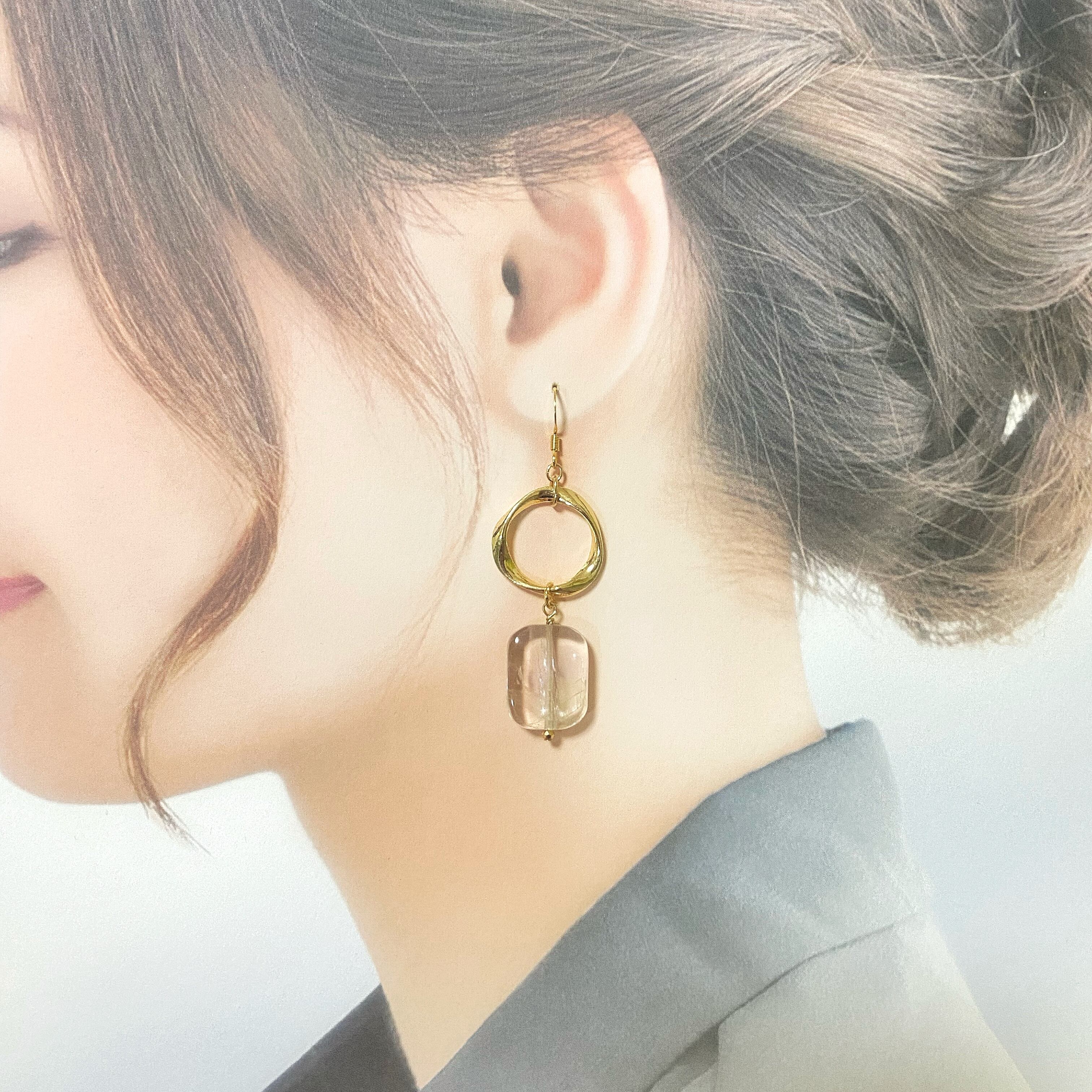 大きめな天然石とゴールドのひねりフープとのバランスが絶妙なデザインです✧︎*。