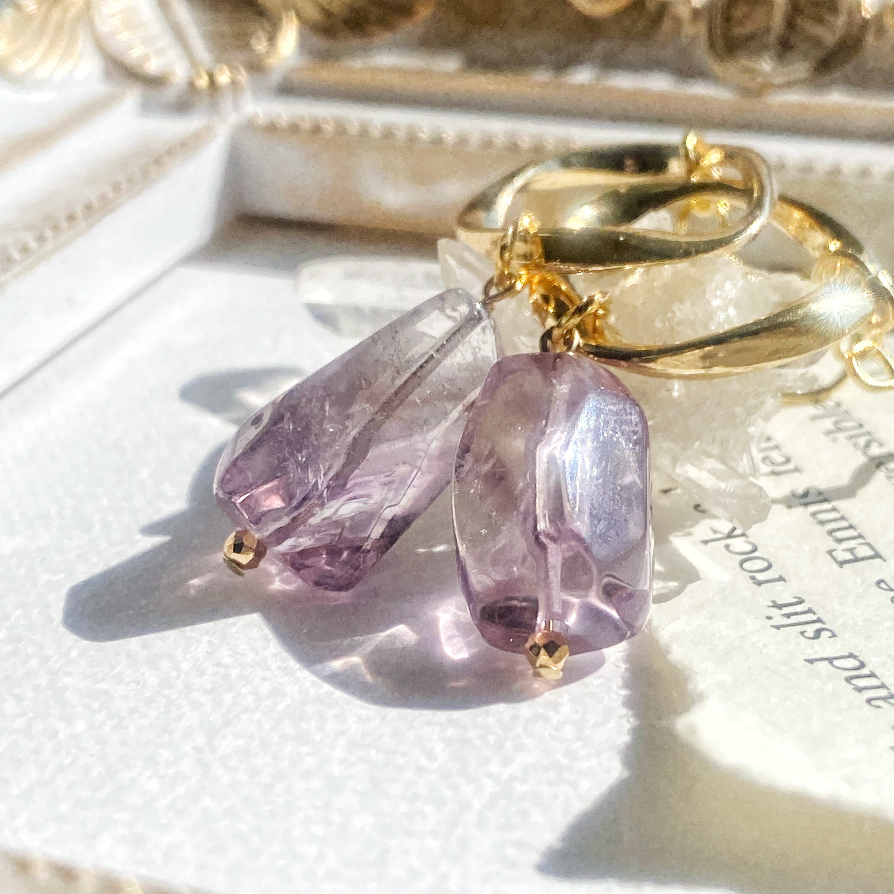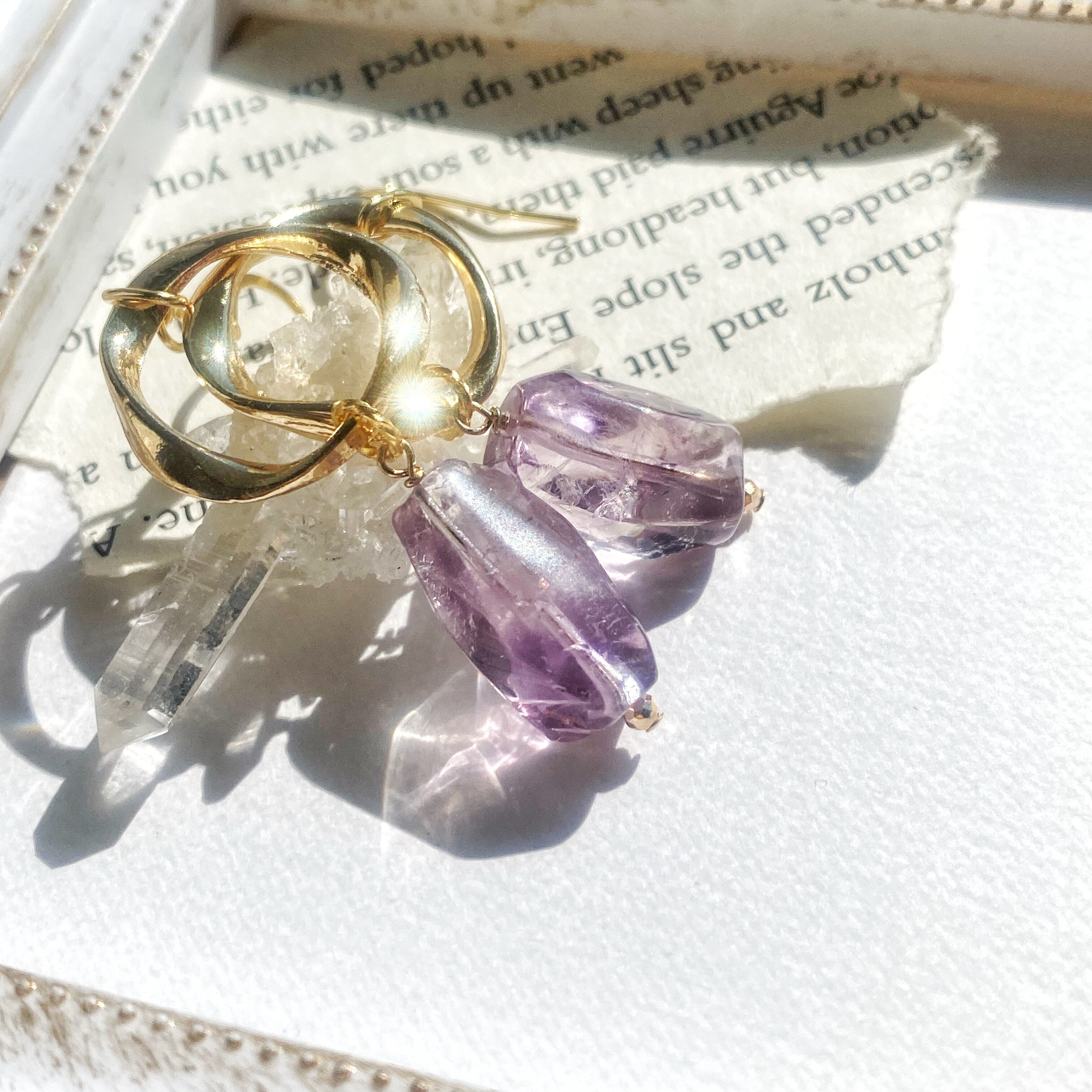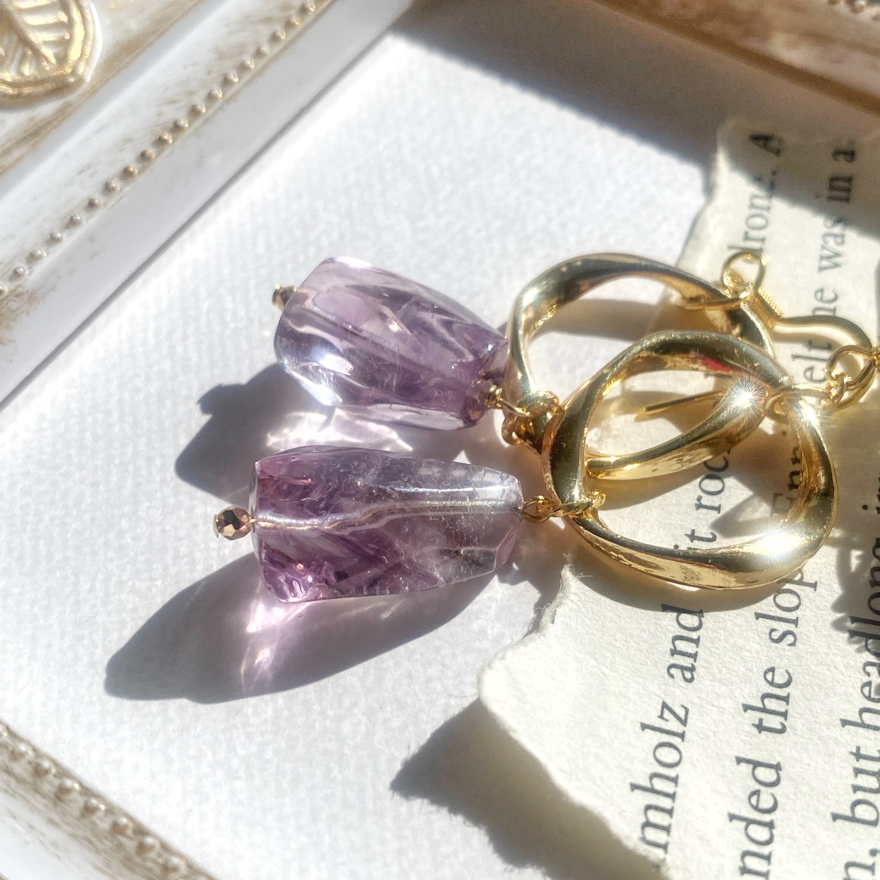 大きめな天然石とゴールドのひねりフープとのバランスが絶妙なデザインです✧︎*。