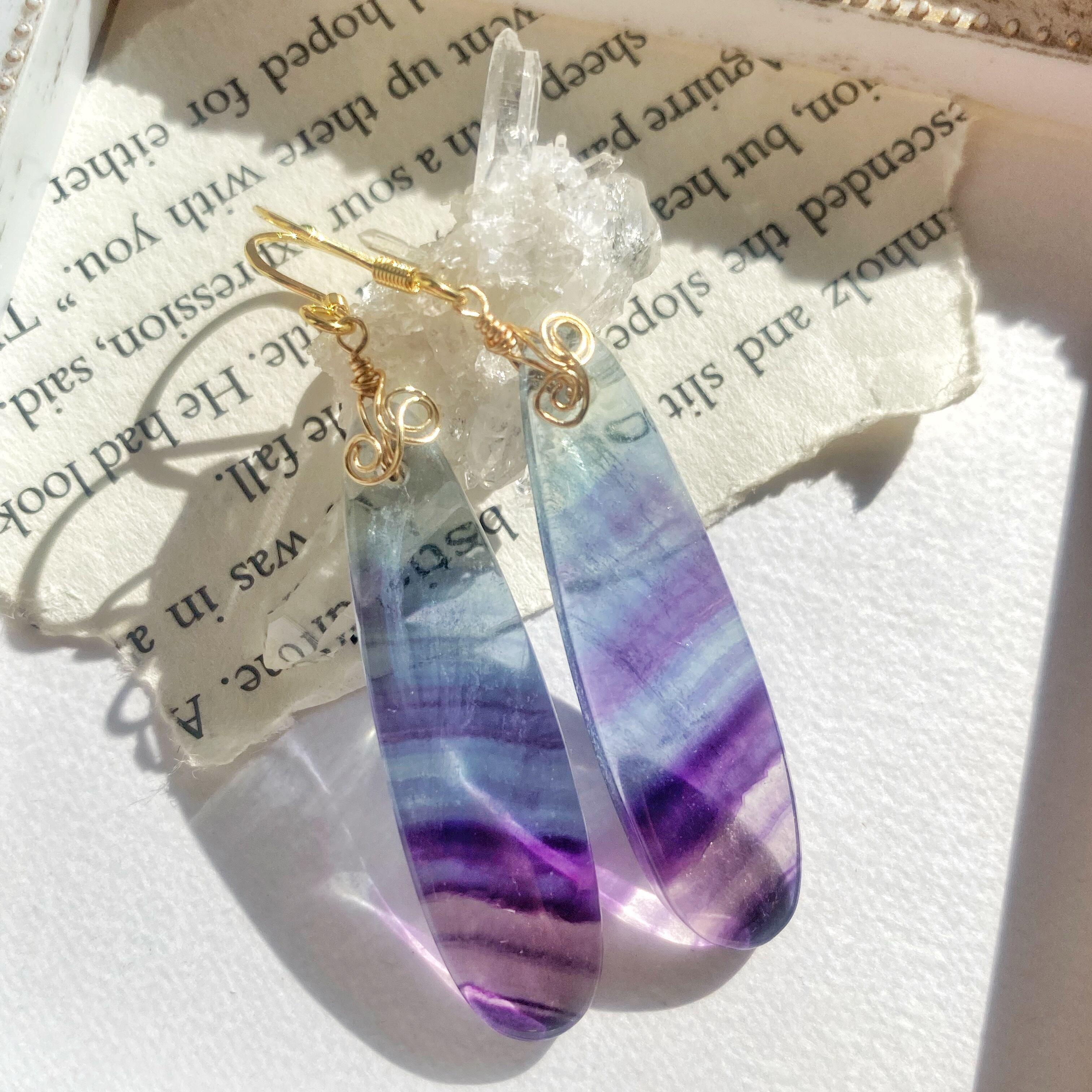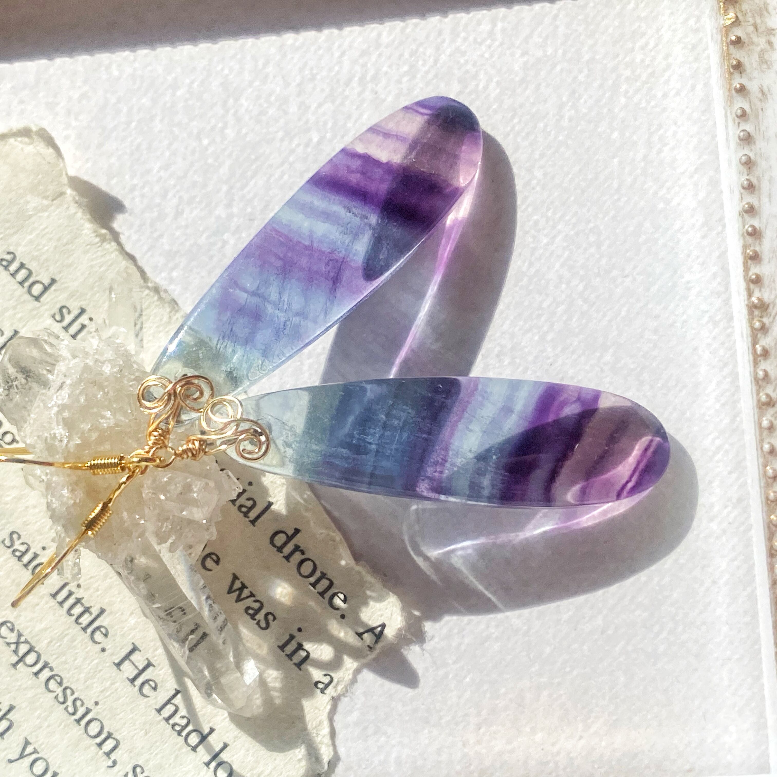 左右の模様が揃ったレインボーフローライトを使用したアクセサリー✧︎*。